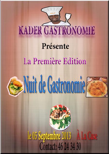 La nuit de la gastronomie est une soirée culinaire où le patrimoine gastronomique du pays sera honoré. Durant cette nuit la richesse et la diversité de nos mains traditionnelles et modernes seront revisitées. C’est le rêve de bon nombre de passionnés de la cuisine qui va enfin voir le jour.
