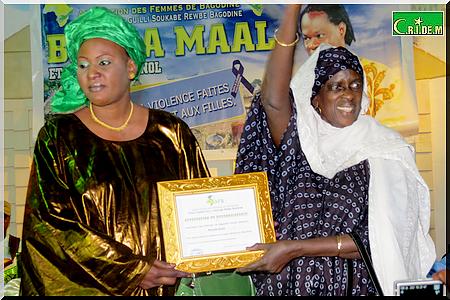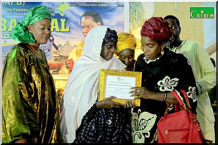 En marge de cette soirée, l’Association des Femmes de Bagodine (AFB) a primé neuf mauritaniennes. Parmi celles-ci, on retrouve la présidente de la Fondation Moktar Ould Daddah, Marième Daddah, la première femme ministre en Mauritanie, Aissata Kane, la présidente de l’Association Mauritanienne des Droits de l’Homme (AMDH), Me Fatimata Mbaye…