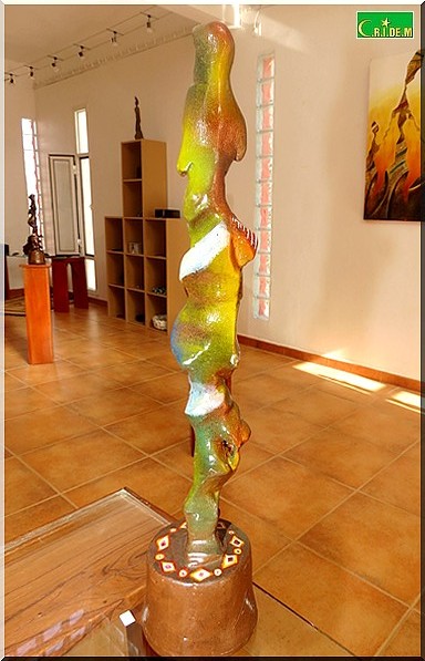L’exposition s’ouvre sur une sculpture aux formes déliées et secrètes. Il s’agit de "Jeune fille" sculptée en deux versions. "On ne sait pas si c’est une mauresque, une halpoular, une Wolof ou une Soninké", note Mokhis qui explique que l’essentiel n’est pas de regarder mais de sentir fondre les identités et les différences dans le moule de l’unicité.
