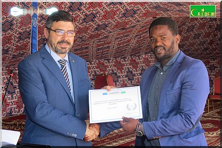 "Je voulais louer la qualité de la photo. C’est vraiment excellent mais aussi l’esprit et le message qui accompagne la photo", a commenté le Chef de la Délégation de l’Union Européenne en Mauritanie, avant de lui remettre son prix.