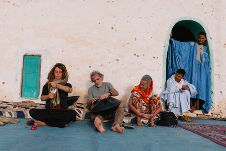 La mosquée voisine retentit. Les notes des instruments des voyageurs et leurs rires se noient dans la lancinante séance chant soufi, ou dhikr, qui débute. Les fidèles, assis en cercle, dans la mosquée, chantent les mémoires du prophète Mohammed. L’obscurité se fait. Les palmiers et les pierres et les dunes s’évanouissent dans la nuit. Et Maaden devient mirage.