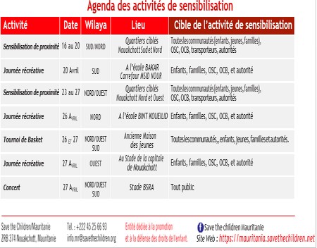 19-04-2019 21:45 - Projet AFIA : campagne de sensibilisation/Communiqué de presse de Save the Children