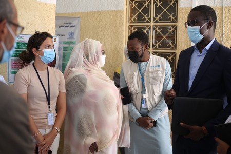 Une délégation de la Banque Mondiale faisait partie de la délégation. L’équipe du service Education pour la santé au ministère de la Santé a échangé avec le personnel de santé, les agents communautaires et les citoyens venus se faire vacciner.