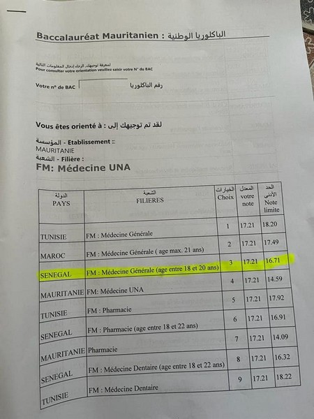 Ceci est attesté par le document d'orientation ci-joint émis par la Direction d’orientation et qui confirme l’orientation de Habib pour étudier la médecine au Sénégal.
