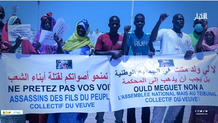 Senalioune - Des orphelins et veuves de victimes des événements douloureux de 89-90 ont manifesté ce jeudi 27 avril courant sur la place de la Liberté devant le Palais présidentiel, dans le centre-ville de la capitale Nouakchott, pour protester contre l’investiture de l’ex Général de division Mohamed Ould Meguett à la tête de la liste d’Insaf, le parti au pouvoir.