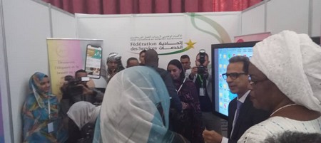 La Première Dame, Dr. Meriem Fadel Dah, accompagnée de l'épouse du Président Sénégalais, Mme Meriem Fay Sall, ont visité le stand de la Fédération des Services à l'exposition organisée en marge de la conférence internationale sur le rôle des femmes leaders dans l’autonomisation des femmes dans le domaine du numérique.