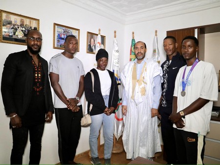 Rimsport - Le président du Comité National Olympique et Sportif Mauritanien(CNOSM), M. Abderahmane Ethmane a reçu vendredi matin à son bureau, une délégation de combattants mauritaniens ayant décroché des médailles au Tournoi International des Parcelles Assainies (Dakar-Sénégal).