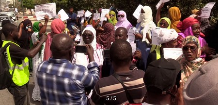 Sinya Aidara, présidente d’une ONG et activiste, explique le sens du rassemblement «nous sommes ici pour réclamer justice suite à la mort de Hawa Traoré, une jeune femme de 18 ans, victime d’un viol, suivi d’un assassinat. Ce qui nous fait mal, c’est que l’autopsie n’a pas révélé qu’elle a été victime de viol, elle était enceinte au moment des faits».