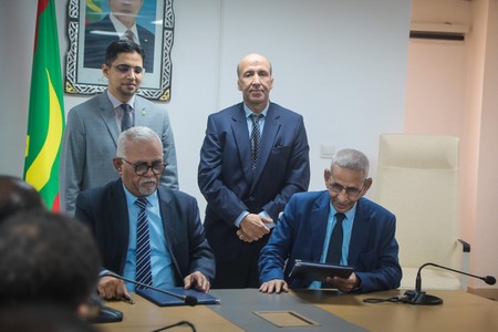 Sous la supervision de Son Excellence Monsieur Mohamed Abdallahi Ould Louly, Ministre de l’Autonomisation des Jeunes, de l’Emploi, des Sports et du Service civique, et de Monsieur Mohamed Ould Noueigued, Président du Conseil d’Administration de la Banque Nationale de Mauritanie (BNM), et en vertu d’un mandat conjoint, les deux parties ont procédé à la signature d’une convention relative à la remise et aux modalités de décaissement d’une contribution financière destinée à soutenir les programmes d’emploi des personnes en situation de handicap.
